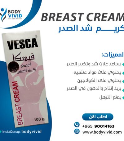 يعمل على شد وتكبير الصدر – يحتوي على مواد عشبية – يحتوي على الكولاجين – يزيد من إنتاج الدهون في الصدر – يمنع الترهل